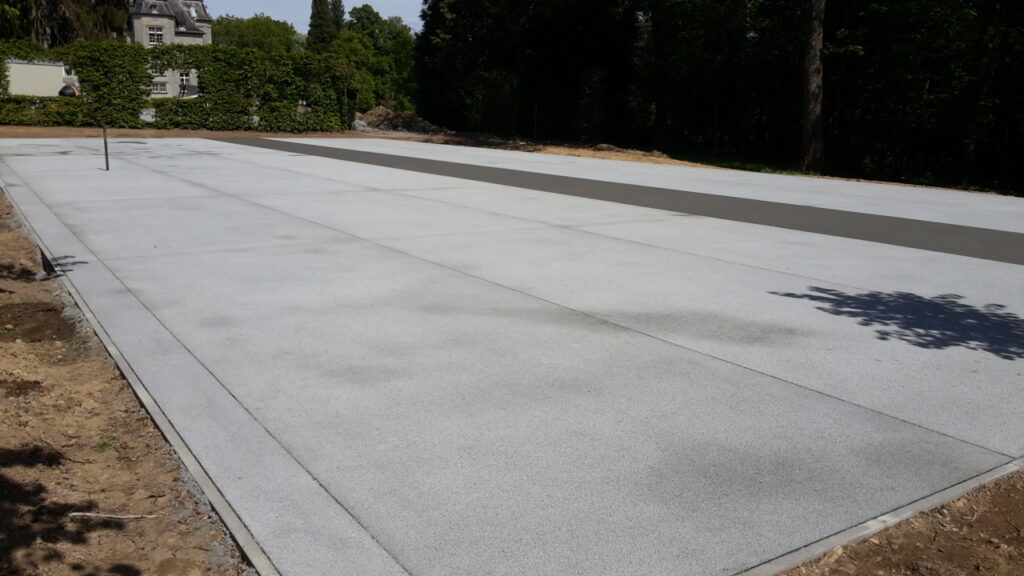 Découvrez nos projets de construction sur béton poreux, résine synthétique et terre battue :