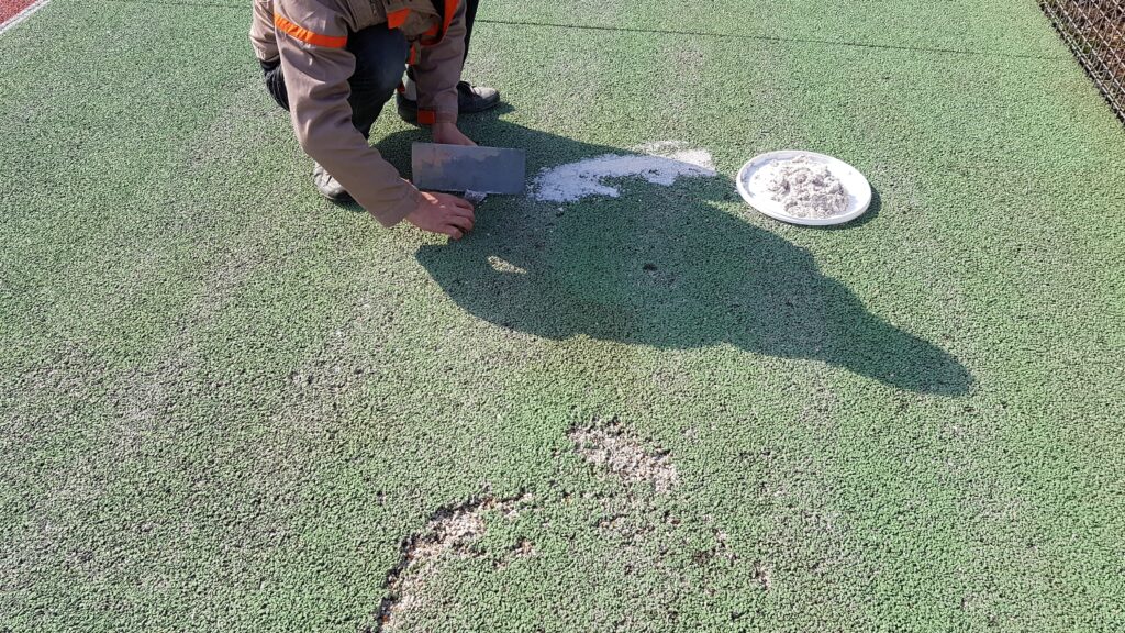 Découvrez nos interventions d’entretien et de réparation sur béton poreux, résine synthétique et terre battue :